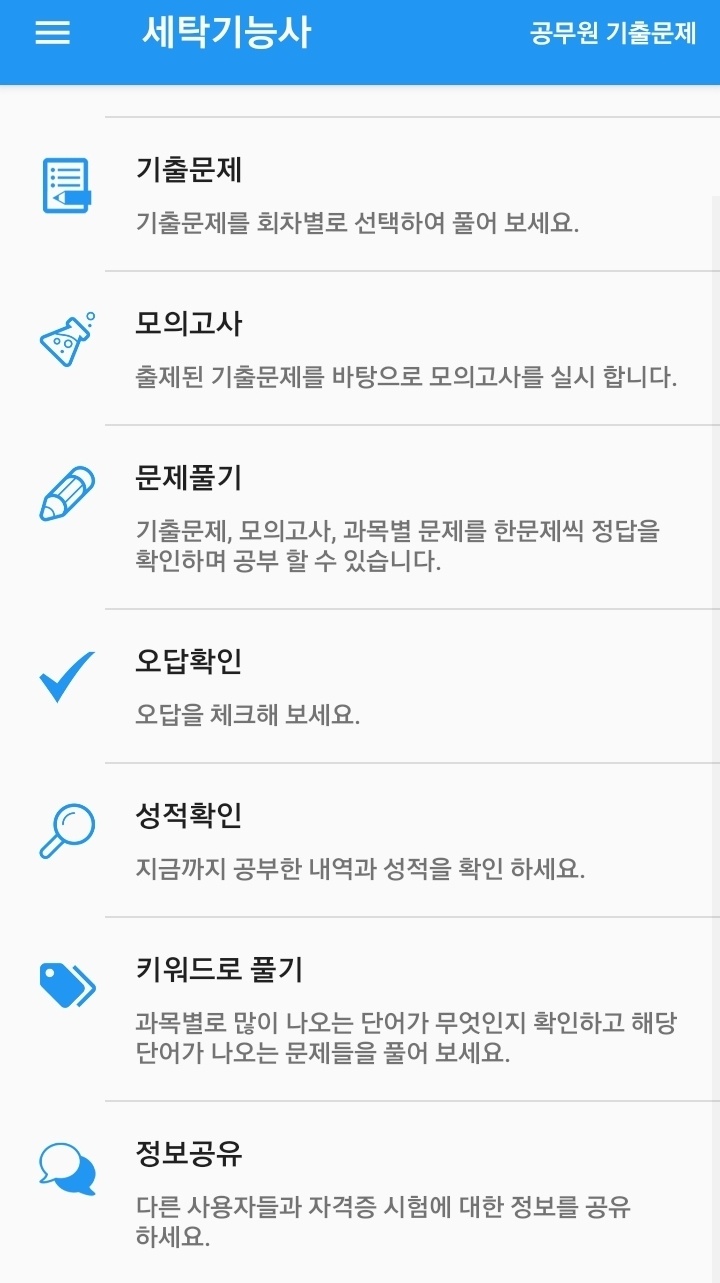 자격증 및 공무원 시험 공부를 할수 있는 기출문제앱 입니다!! 100종목 이상의 자격증 기출문제와 2007년부터 2018년 상반기까지의 공무원 시험 기출문제를 풀어 볼 수 있습니다. 1. 기출문제 기