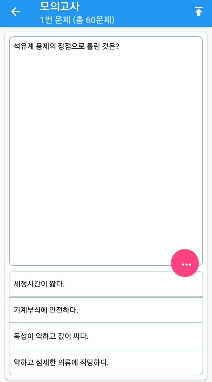 위 어플을 이용하여 연도별 필기 기출문제 및 여러 유형의 문제 풀이가 가능하고 오답 확인도 가능합니다.