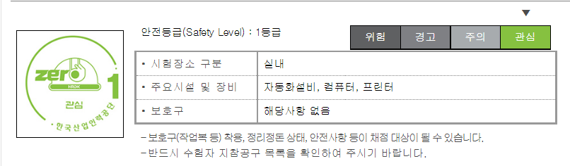 생산자동화기능사 실기시험은 안전등급 1등급의 시험으로 따로 보호구는 없으며 수험생 지참공구 목록정도만 체크하셔서 챙겨가시고 만일 챙기지 않을 시 감점이 되니 참고 하시길 바랍니다.