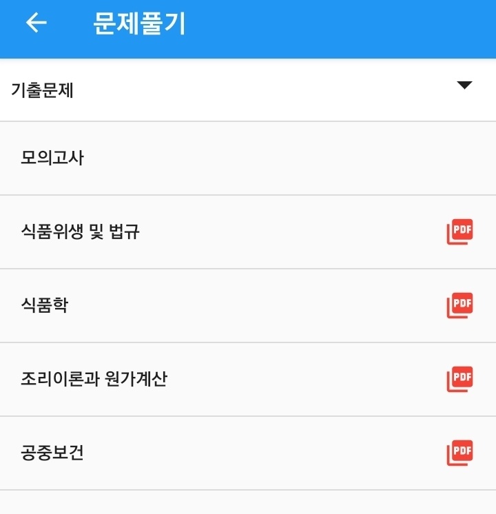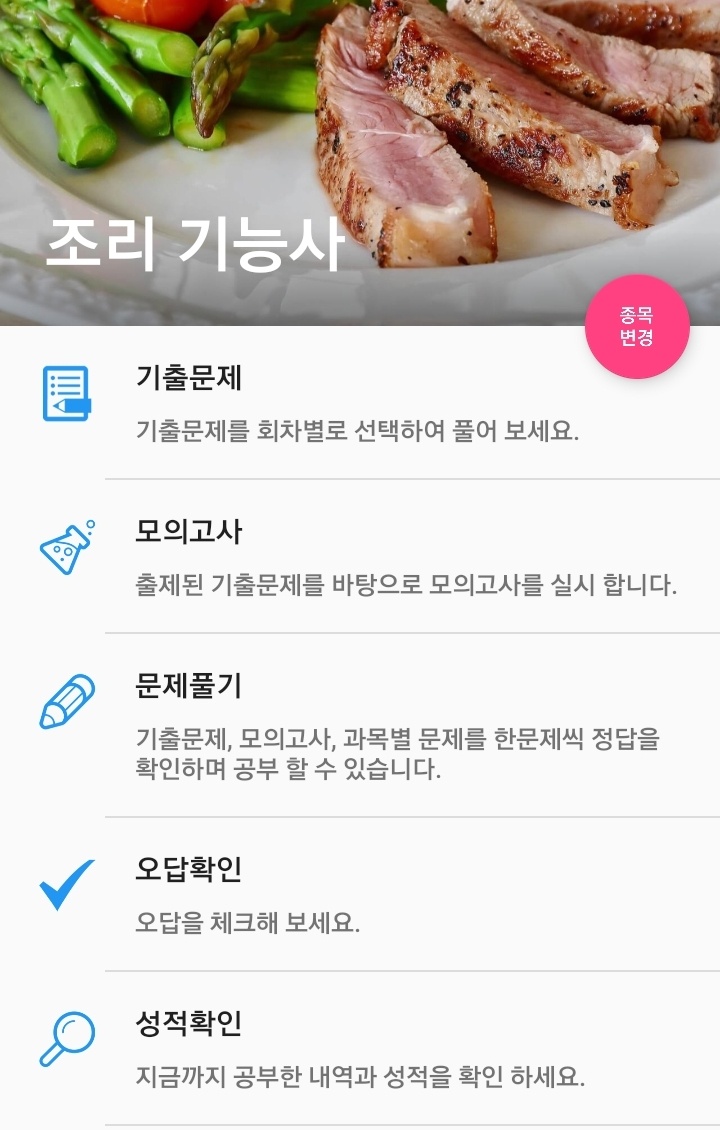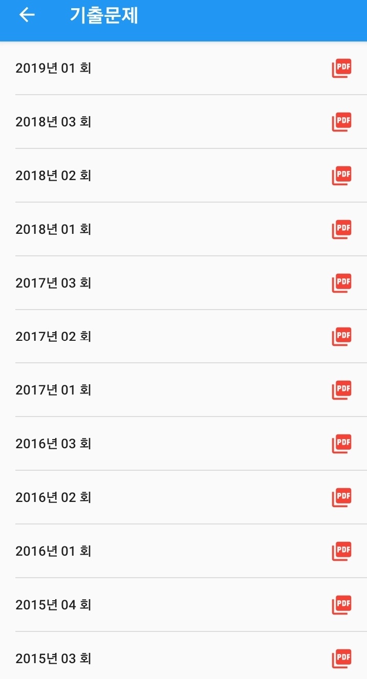 어플을 이용하여 연도별 기출문제와 모의고사 등 여러 유형의 문제를 풀 수 있습니다.