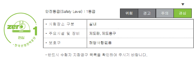 실내건축기능사의 시험은 안전등급 1등급의 시험으로 따로 보호구는 필요 없으며, 반드시 수험생 지참공구 목록을 확인하여 챙겨가야 감점을 당하지 않으니 참고 하시길 바랍니다.