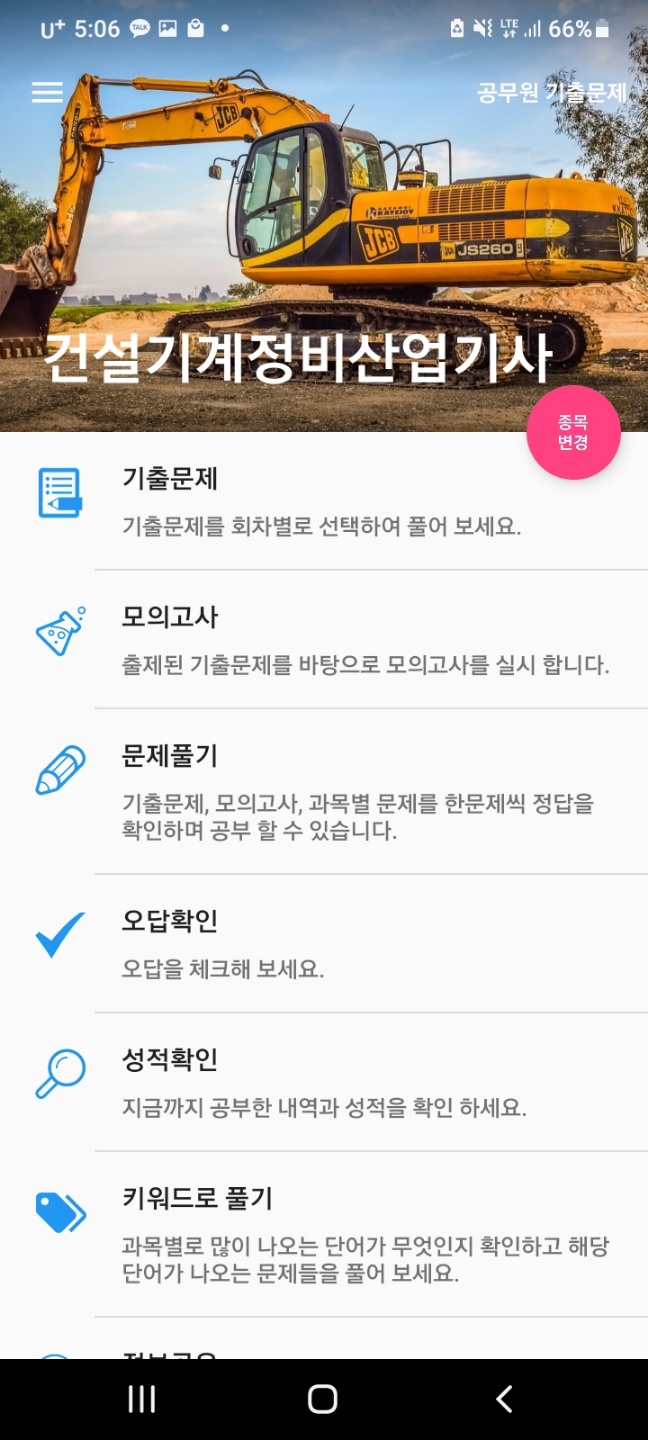 이 어플은 연도별 기출문제와 모의고사를 풀 수 있으며, 문제를 풀고 나서 오답 확인까지 다 할 수 있는 유용한 어플입니다.