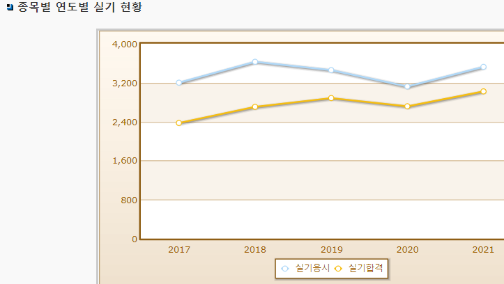 위 합격률로 보았을 때 실기시험 합격은 쉽고 필기시험이 어려운 시험이라는 감이 오실거라 생각됩니다.