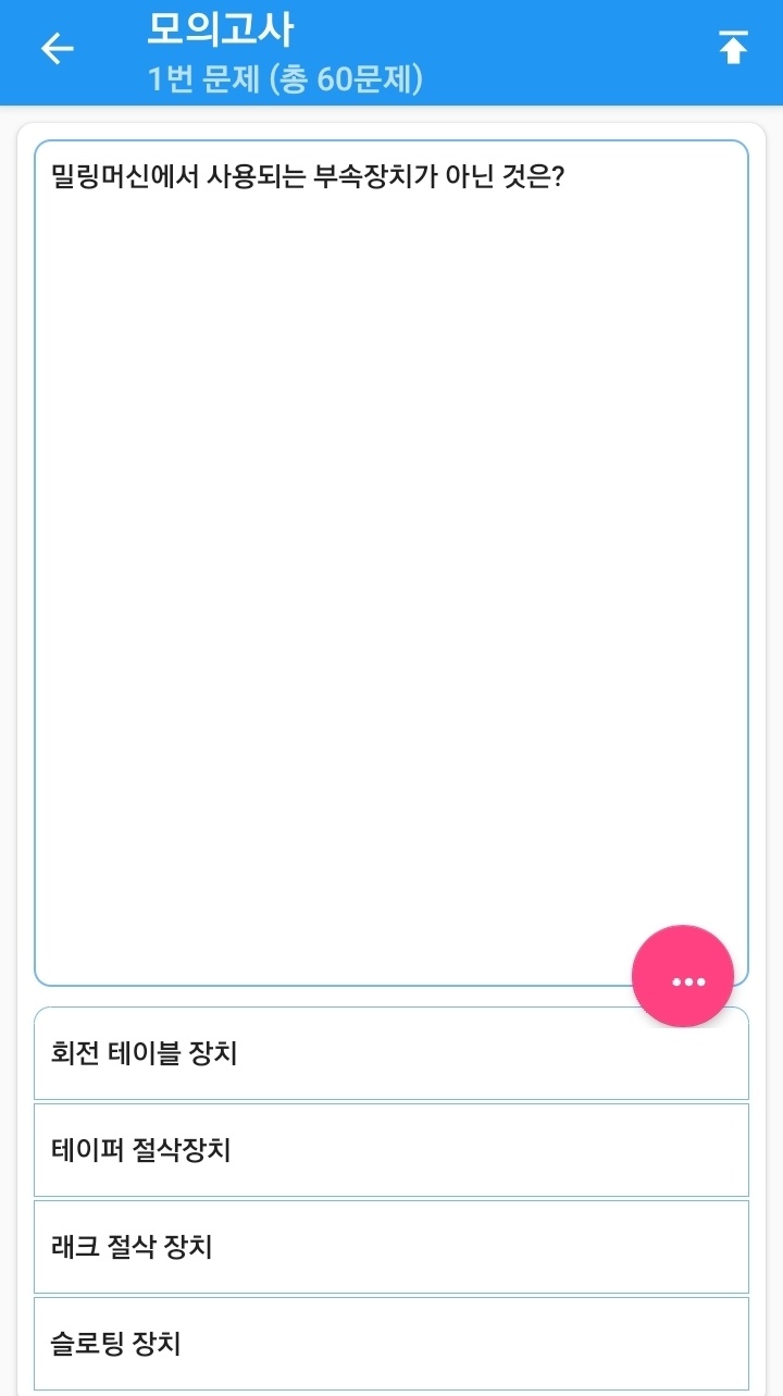 어플을 이용하여 연도별 필기 기출문제와 모의고사 등 여러 유형의 문제를 풀 수 있고 오답 확인도 가능합니다.