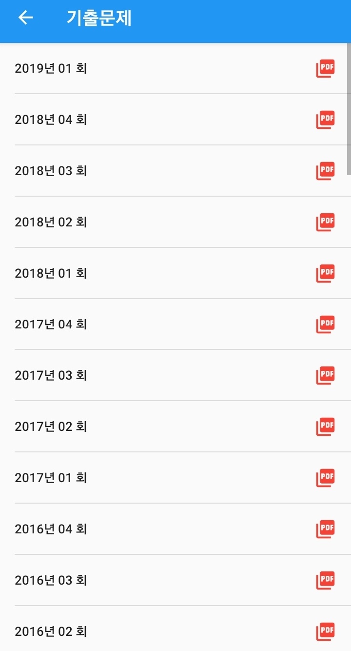위 어플을 이용하여 연도별 필기 기출문제 및 모의고사 등 여러유형의 문제 풀기가 가능하며, 오답 확인도 가능합니다.