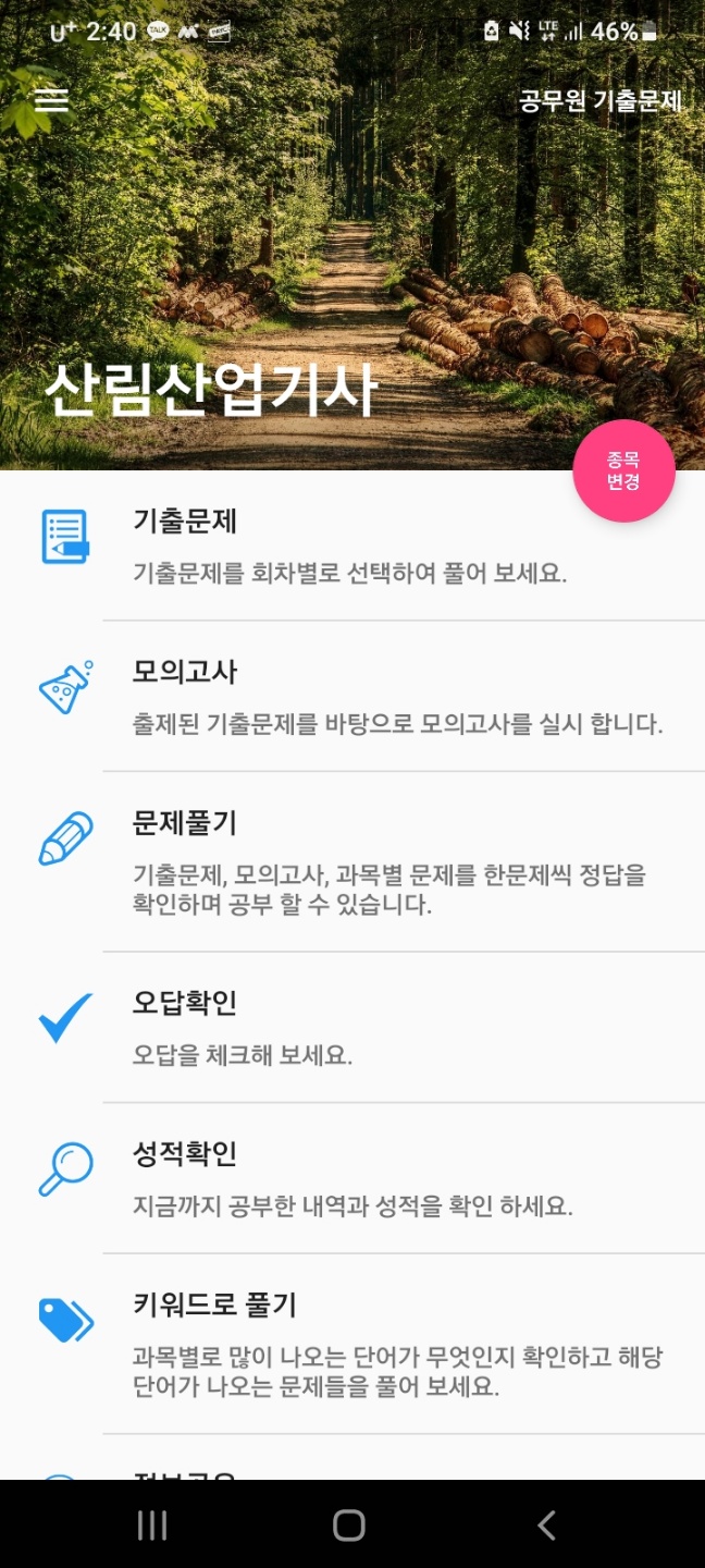 어플을 이용하여 연도별 기출문제와 모의고사, 오답확인 가능한 어플이 있습니다. 또 시험 준비생들과 시험에 대한 정보공유도 가능합니다.
