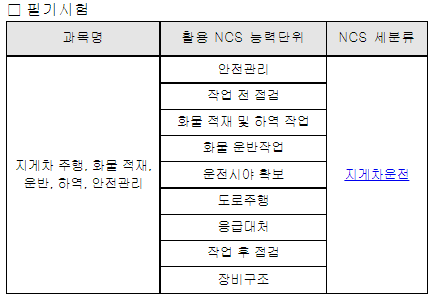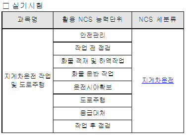 지게차운전기능사 시험은 국가직무능력표준(NCS)을 기반으로 시험을 진행합니다.