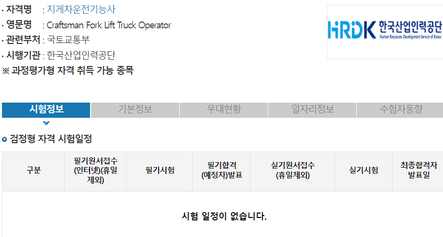 지게차운전기능사 시험일정 및 시험과목