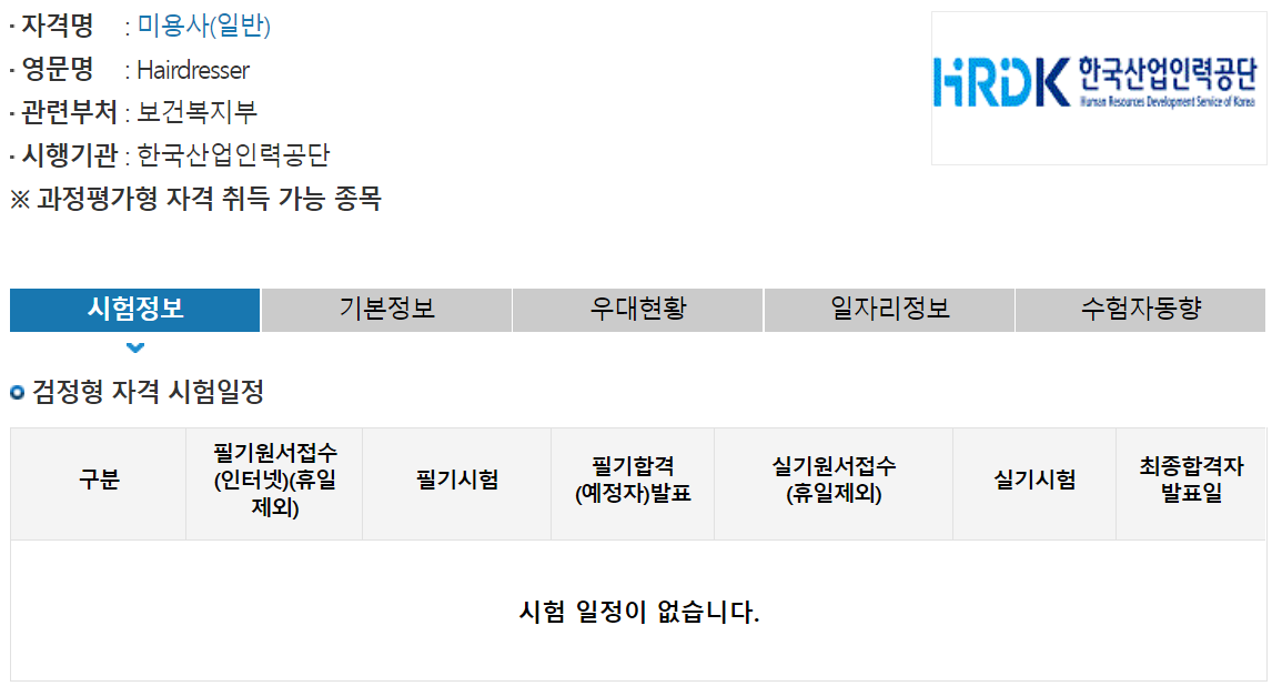 미용사 일반 자격증 시험일정은 따로 정기시험 일정이 있는 것이 아니라 상시 시험으로 상시 시험 일정 관련은 큐넷 홈페이지를 통해 알 수 있습니다.