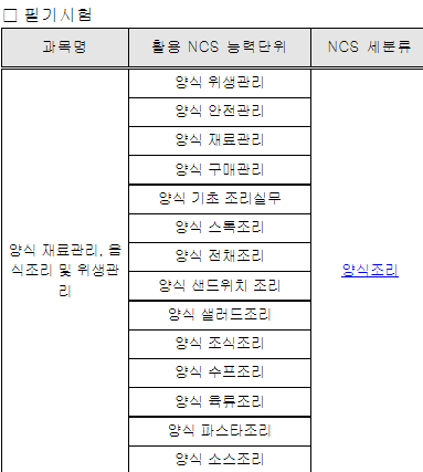 필기시험 과목은 양식 재료관리, 음식조리 및 위생관리이며 객관식 4지 택일형식으로 시험을 보게 됩니다.