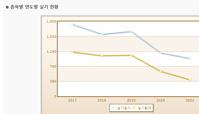 실기시험의 합격률은 그래도 조금 높은 편이나 필기시험 합격률이 많이 낮은 시험인 만큼 잘 준비해서