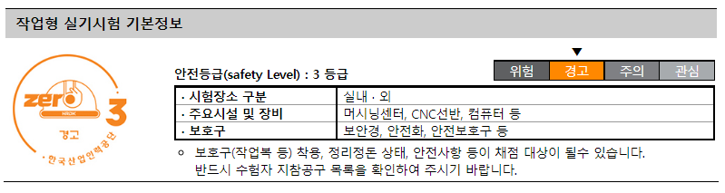 실기시험의 경우 안전등급 3 레벨이라 보호구와 수험생 지참 공구를 필히 확인하여 챙겨가야 하며,