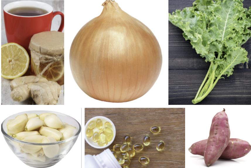 - 생강: 생강은 진저롤과 쇼가올이라는 성분이 함유되어 있어 몸을 덥혀주고 혈액 순환을 돕습니다. 생강차나 생강라떼를 마시거나, 꿀에 절인 생강청을 먹는 것이 좋습니다.