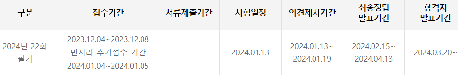 아래 시험문제는 2022년, 23년도 시험문제입니다.