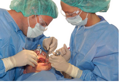 임플란트 수술은 전문적인 치과 의사나 구강 외과 전문의에 의해 수행됩니다. 일반적으로 수술 후 임플란트는 몇 개월 동안 치아와 함께 인공 잇몸으로 덮여 골이 잘 결합되도록 하고, 그 후에 인공 이빨이 부착됩니다.