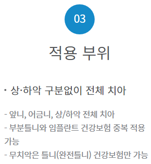 적용 부위는 위아래 턱 구분 없이 어금니,앞니 모두 적용됩니다.
