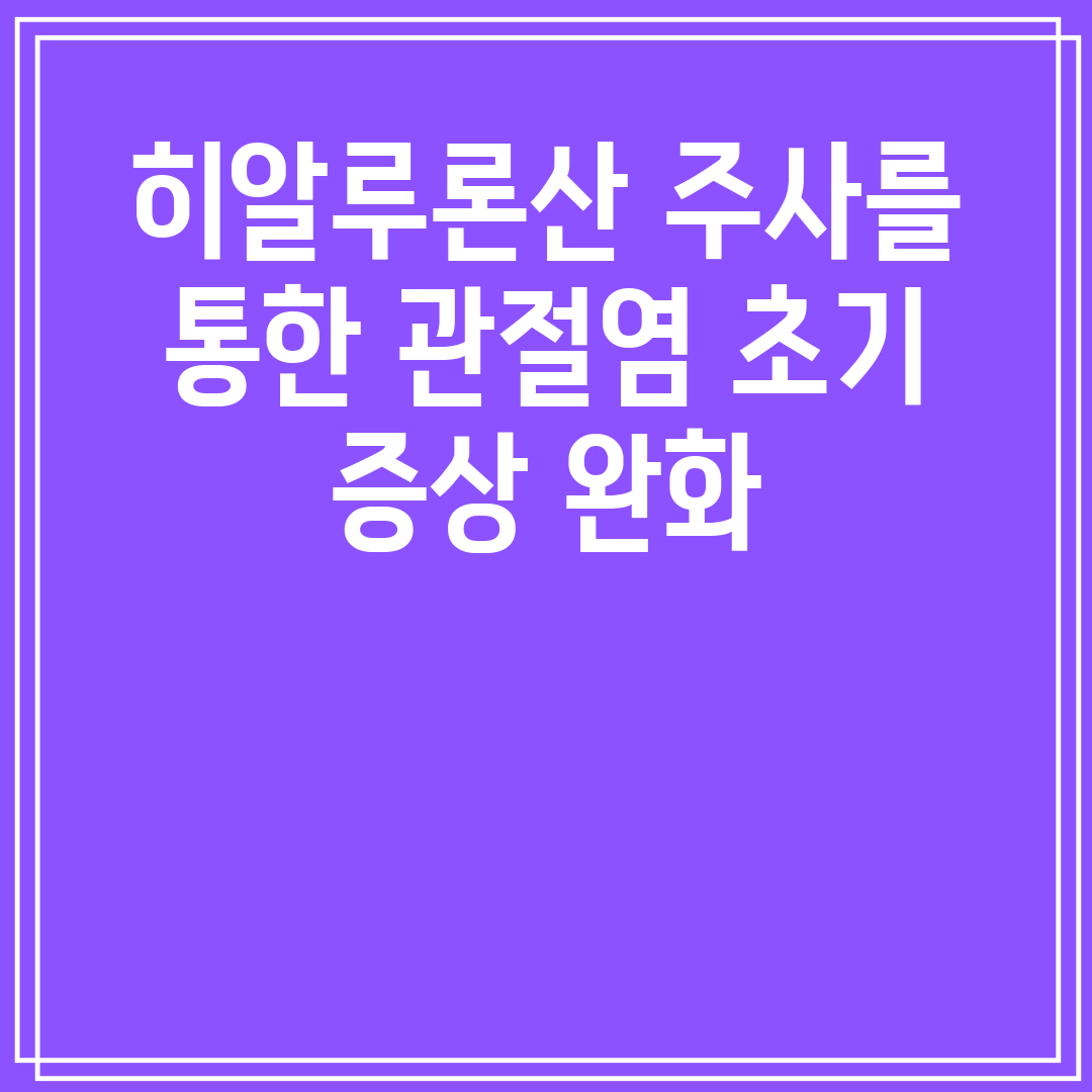 히알루론산 주사는 관절염 초기 증상을 완화하는 효과적인 치료법입니다. 이 주사는 윤활제와 쿠션 역할을 하여 통증과 뻣뻣함을 줄여줍니다. 또한 관절 손상을 예방하고 운동성을 향상시켜 환자의 삶의 질을 크게 향상시킬 수 있습니다.