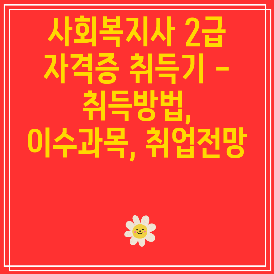 사회복지 분야에서 성공적인 경력을 쌓고 싶으신가요? 사회복지사 2급 자격증을 취득하는 것을 고려해 보세요. 이 블로그 글에서는 사회복지사 2급 자격증 취득 방법, 필수 이수 과목, 밝은 취업 전망에 대해 심도 있게 살펴보겠습니다.