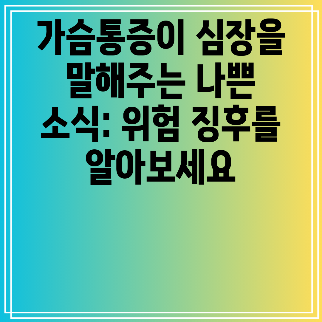 가슴통증은 경시할 수 없는 심각한 징후입니다. 위험 신호를 무시하지 않고, 통증이 나타나면 즉시 의료 도움을 구하세요. 심장 질환의 조기 진단과 치료는 삶을 구할 수 있기 때문입니다.