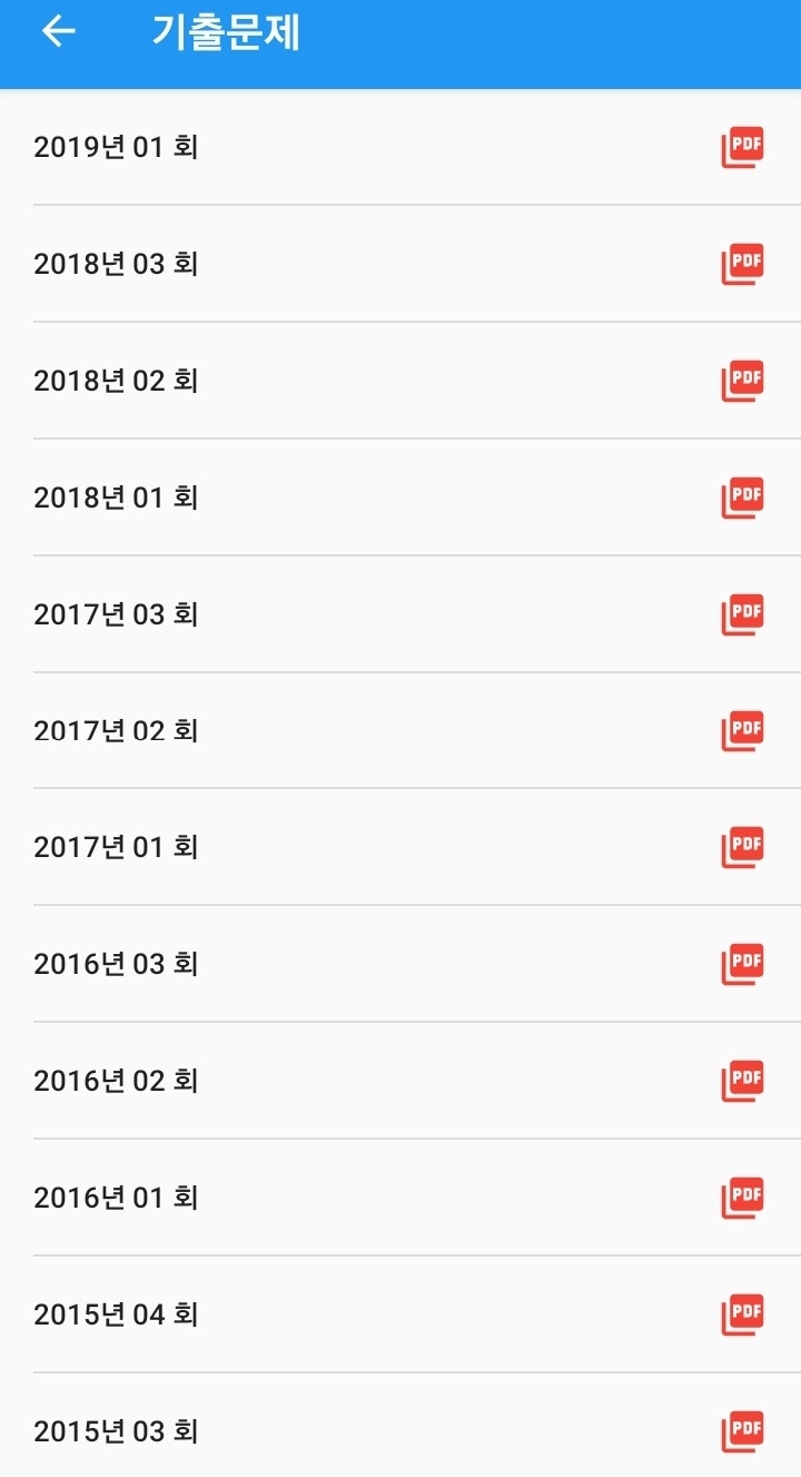 어플을 이용하여 년도별 기출문제와 모의고사 여러 유형의 문제풀기가 가능하며, 오답확인도 가능합니다.