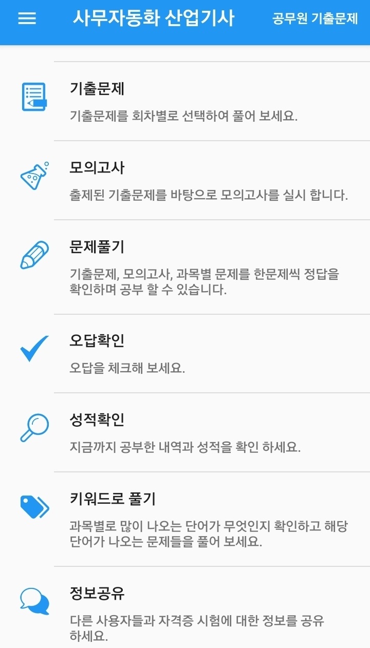 시험을 준비하는 준비생 분들과 시험 정보에 대한 공유도 가능하여 아주 유용한 어플입니다.