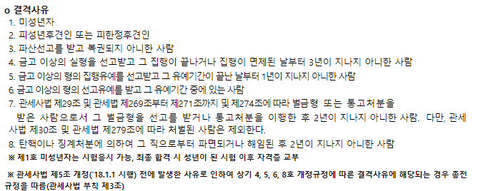 아래에 결격사유에 해당하는 기준표를 첨부해드리니 확인하시고 참고하시기 바랍니다.